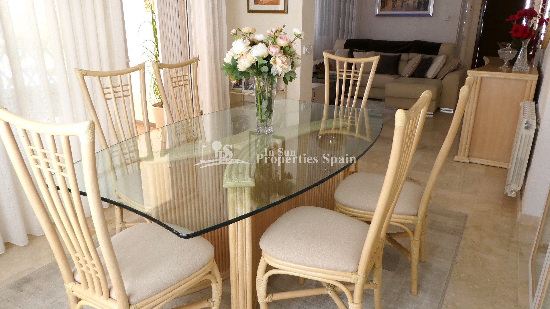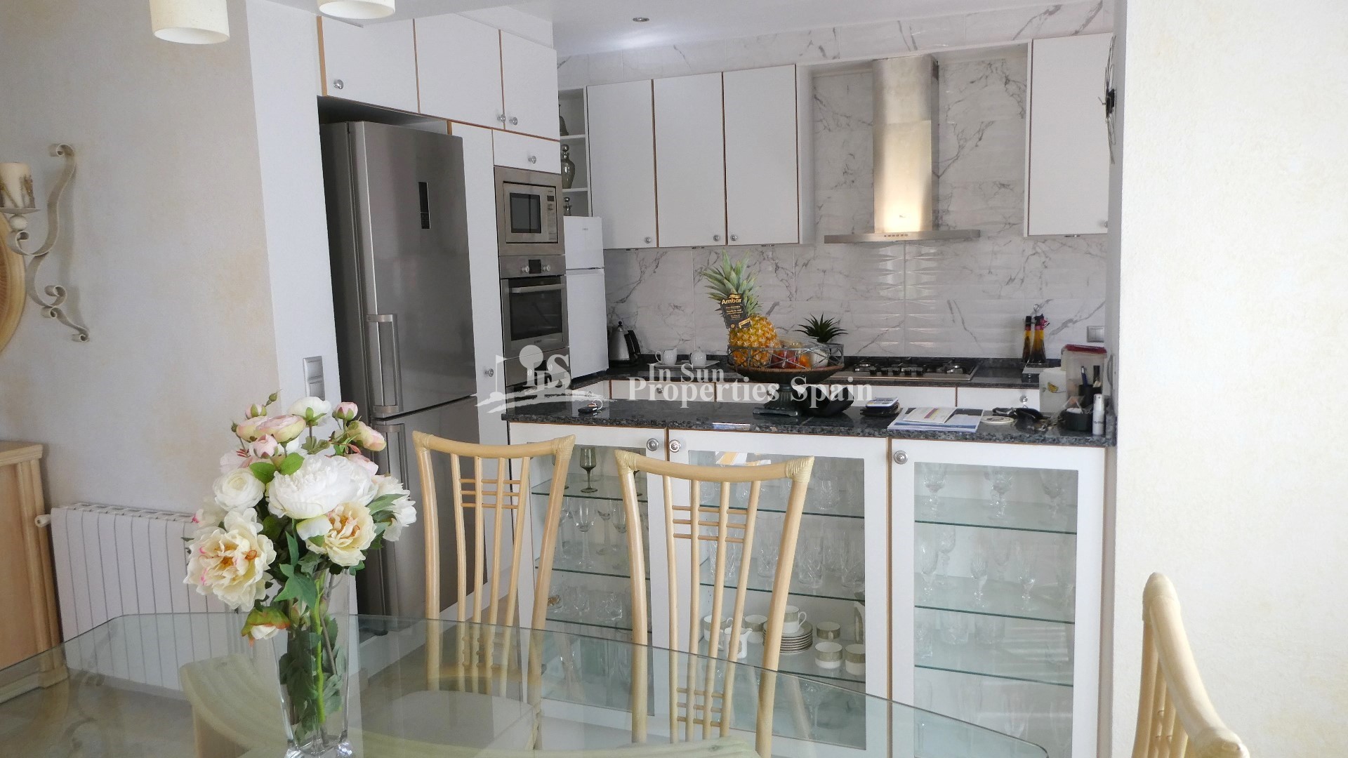 This exceptional 165 m² Detached Villa with 4 bedrooms, 3 bathrooms is fully refurbished and overlooks a beautiful green area in the sought-after community of Cazorlaon, Los Dolses, it combines modern comfort with elegant Mediterranean living.