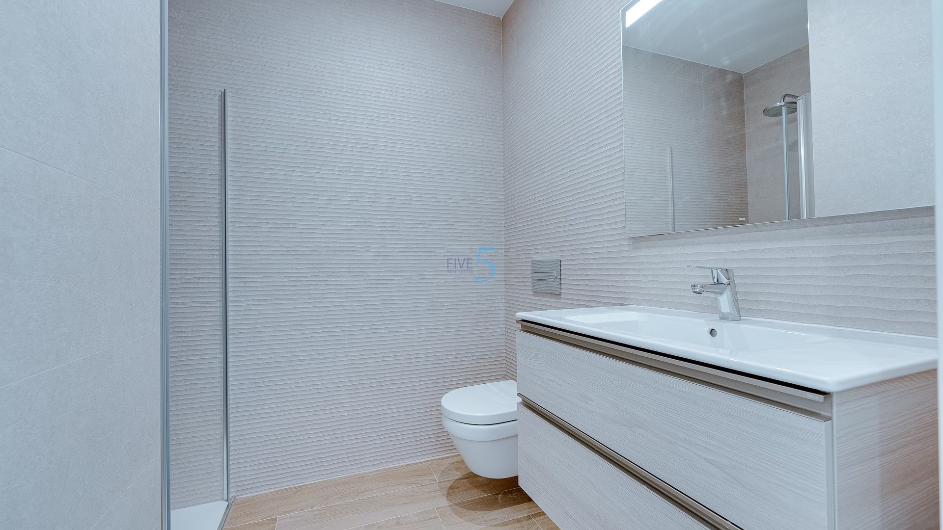 This stunning two-bedroom, two-bathroom ground-floor apartment is located within the newly built Nalia complex, which boasts impressive communal facilities including secure underground parking, beautifully landscaped gardens and a swimming pool with a jacuzzi. The apartment has never been lived in and is presented in completely brand-new condition. It features two double bedrooms, two modern bathrooms, and private terrace spaces at both the front and rear of the property.