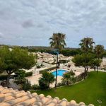 Inside, the apartment features a bright and open-plan living, dining, and kitchen area complete with air conditioning. Tastefully decorated throughout, the space is both stylish and inviting. A standout feature is the charming fireplace, creating a cosy and homely atmosphere. The living area opens onto a private balcony that overlooks the communal pool and landscaped gardensperfect for relaxing or enjoying a morning coffee.