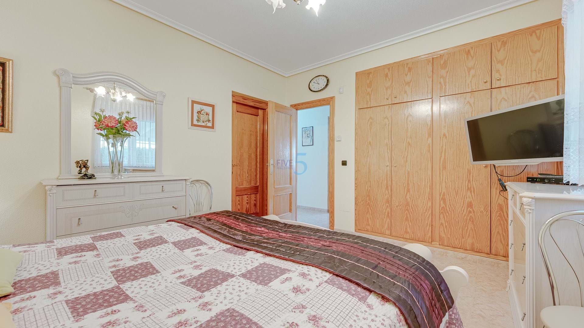 5 Real Estate is delighted to market this spacious south-facing 3-bedroom, 2-bathroom detached villa, set on a large plot in the sought-after Playa Flamenca, featuring a heated pool, landscaped gardens, a driveway, and a solarium with sea views and only a 15-minute walk to the beach.