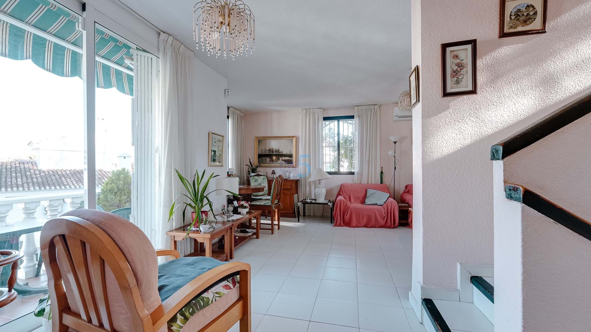 This charming three-bedroom townhouse offers a wealth of character and exceptional views, making it a perfect retreat for golf enthusiasts or anyone who appreciates picturesque surroundings. Located in the heart of Villamartin, the property enjoys close proximity to local amenities, including bars, restaurants, and shops, while the beach is just a 10-minute drive away.
