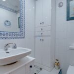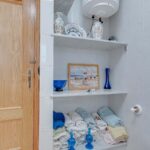 Upstairs, youll find two double bedrooms, both with fitted wardrobes, ceiling fans, and air conditioning. The master bedroom opens onto a spacious south-facing balcony, while the second bedroom leads to a utility room with spiral stairs to the private solarium a fantastic space to enjoy the Mediterranean sun. The property is sold furnished, features awnings for shade on the terraces, offers street parking, and sits within one of Playa Flamencas most attractive and well-kept communities.