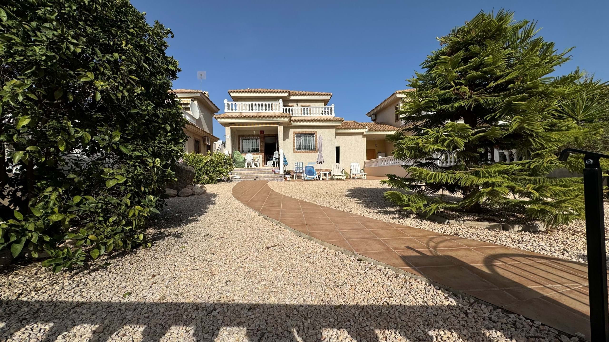 This charming detached villa in Los Dolses offers an exceptional blend of comfort, convenience, and outdoor living. Surrounded by a large garden, the property provides ample space for relaxing or entertaining, with the added benefit of being positioned between two community pools for easy access to swimming and sunbathing. A private driveway and garage enhance convenience, adding to the overall appeal of this delightful home.