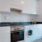 The separate kitchen is modern and stylish, with direct access to the pool area, adding ease and practicality to outdoor entertaining.