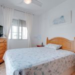 Upstairs, two spacious double bedrooms both include air conditioning, ceiling fans, and fitted wardrobes. The master bedroom benefits from its own private balcony overlooking the attractive communal pool. The renovated family bathroom on this level showcases a modern double vanity and a sleek walk-in shower.