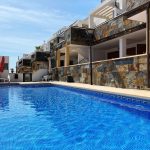 The small-scale and gated complex consists of only ground-floor flats with terrace and first floors with solarium. There is a communal pool and communal charges are low (approx. €55/month).