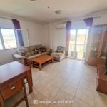The apartment comprises two bedrooms and one bathroom, along with a bright living area featuring a lounge–diner. The separate kitchen includes a practical serving hatch window connecting to the lounge–diner, enhancing both light and functionality. Air conditioning is installed in the lounge, providing comfort throughout the year. The property is sold furnished, making it ready for immediate use.