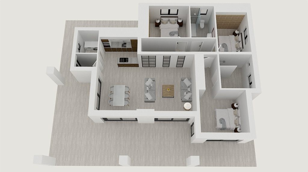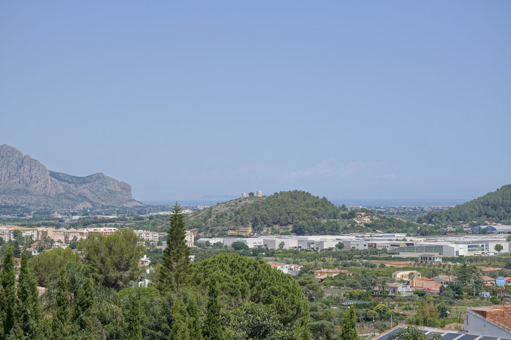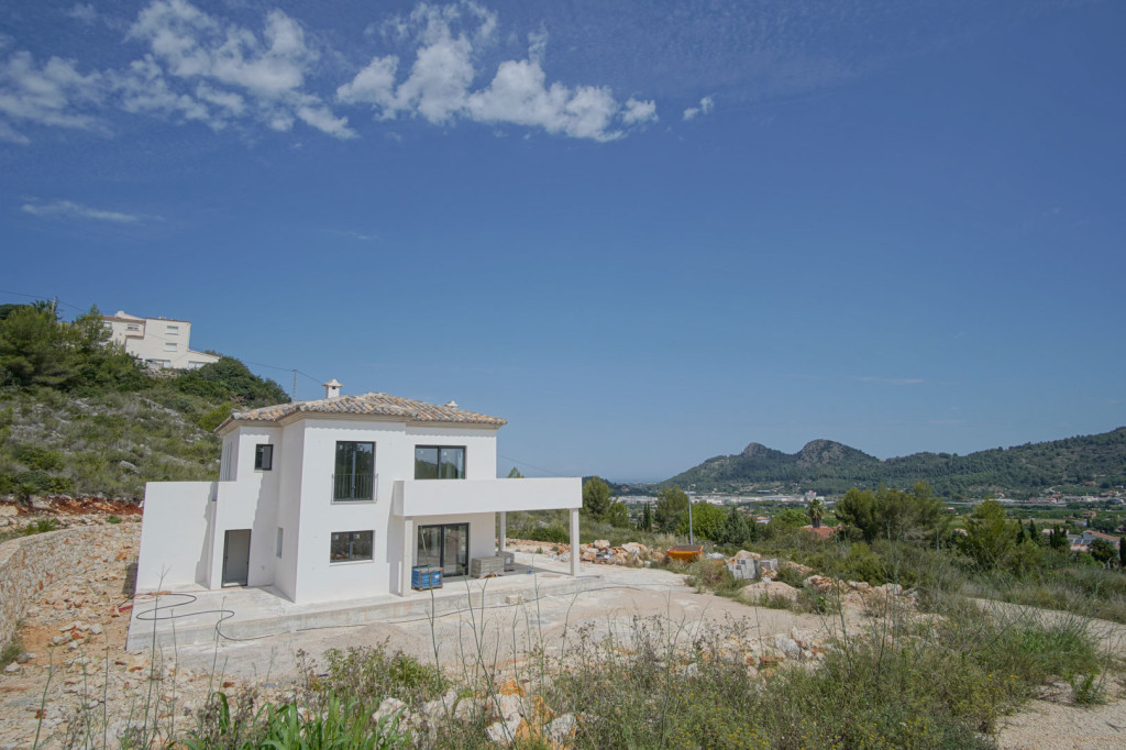 This beautiful new villa with panoramic sea views is part of 4 homes, 2 of which are now under construction and is located in a quiet and green area near Pedreguer. The villa has a spacious lounge with dining area, a fully equipped kitchen, a laundry room, a guest toilet, 2 double bedrooms, a bathroom and the master bedroom with bathroom en suite. In addition to the spacious, partly covered terrace with swimming pool, this villa has various seating areas from where you can enjoy the peace, space and privacy.
