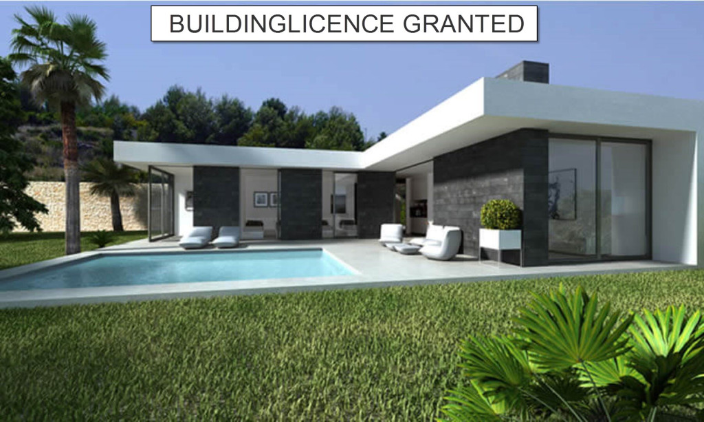 Modern new build villa with sea views for sale in Pedreguer, located in the quiet urbanization of Monte Solana. A building license has been issued by