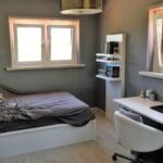 On the first floor are a spacious lounge, a fully equipped kitchen with dining area, a guest toilet and a double bedroom with bathroom which is now used as an office.