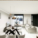 The interior of these townhouses is designed with a focus on comfort and modern technology. Porcelain stoneware floors add a touch of elegance and are easy to maintain. Integrated home automation allows for efficient control of various aspects of the home, while electric shutters add convenience and security. Pre-installation for air conditioning ensures a pleasant environment year-round. Built-in wardrobes offer ample storage space, and the inclusion of appliances facilitates daily life. Additionally, the video intercom provides extra security and peace of mind for residents.