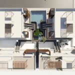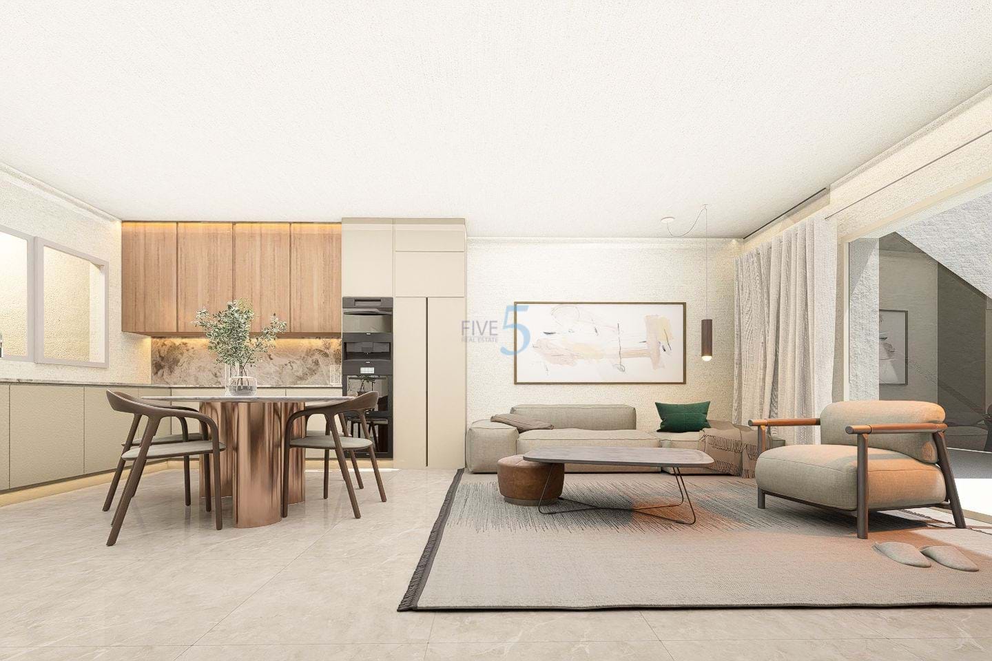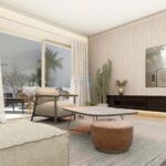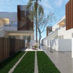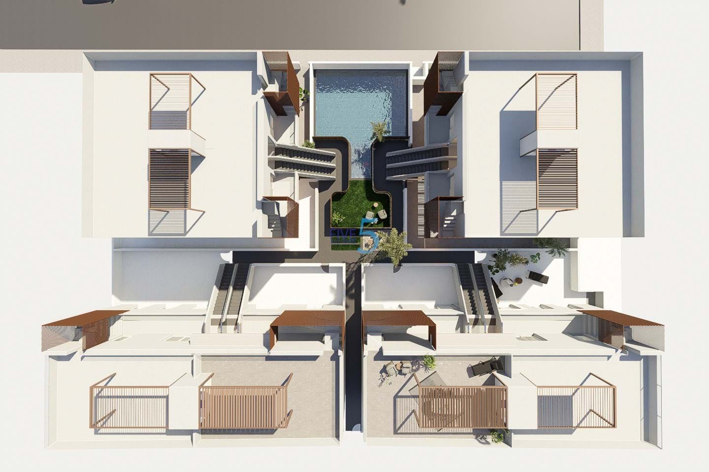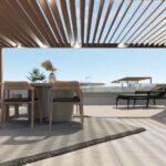 The exteriors of these homes are designed to maximize enjoyment of the Mediterranean climate. Each bungalow features a private terrace, ideal for outdoor relaxation or al fresco dining. Additionally, residents have access to a solarium, offering additional space for sunbathing or simply enjoying the views. The presence of a private garden in each property adds a touch of nature and privacy, allowing residents to create their own personal oasis. The inclusion of a pergola provides shade and comfort, making the outdoor spaces a welcoming place throughout the year.