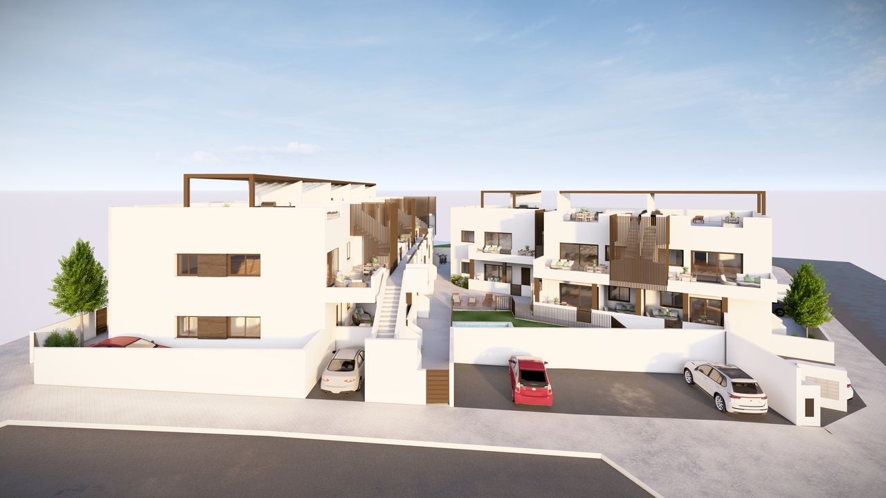 The project includes 16 maisonettes with 3 bedrooms and 2 bathrooms. All the properties will have access to a communal swimming pool, and the units on