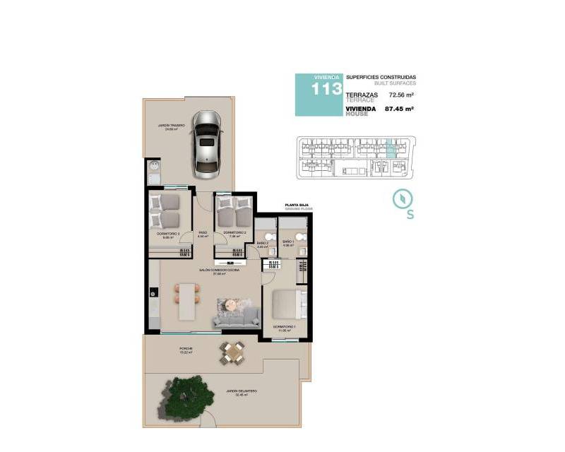 All properties has private gardens and parking space. Plus bungalows on the top floor has private solarium.