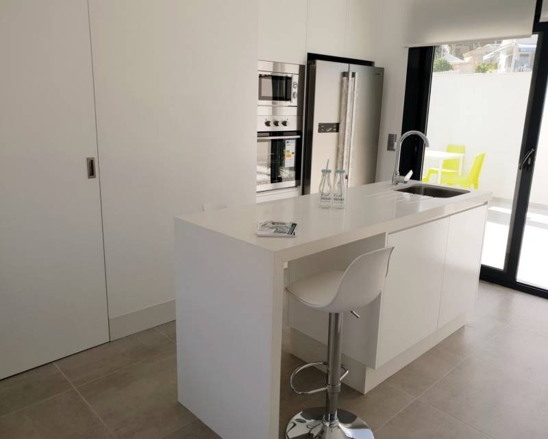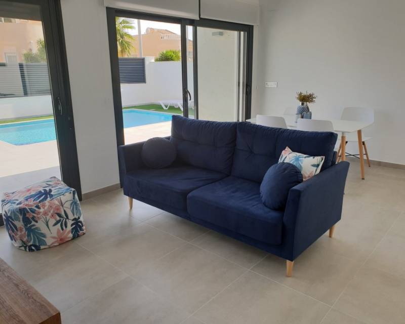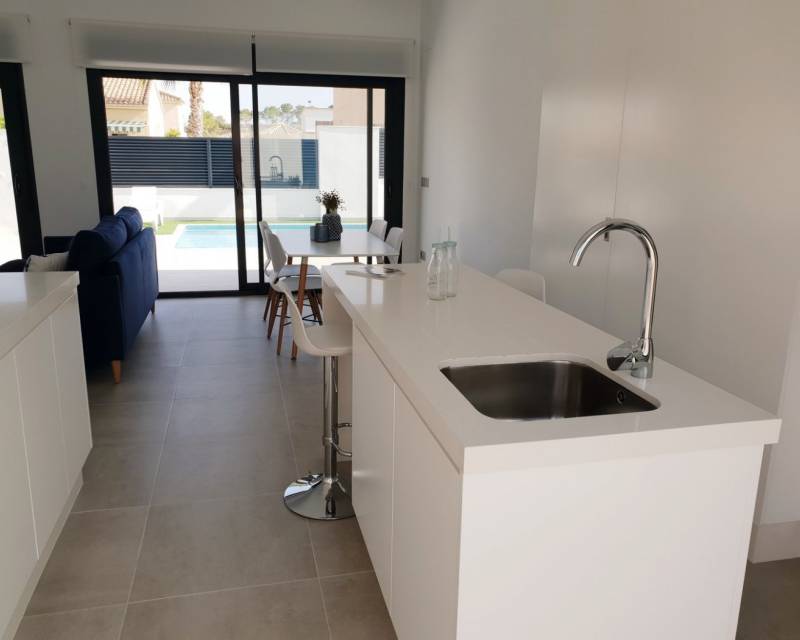 NEW BUILD VILLAS IN PINAR DE CAMPOVERDE Modern residential of newly built villas in Pinar de Campoverde. Small development of only 5 villas, built on one floor with a distribution of 3 bedrooms and 2 bathrooms, open plan living and dining area, fully equipped kitchen, with central island views to the private swimming pool, on independent plots starting at 300,00 m2. There is also a large solarium to enjoy the sun and the beautiful views all year round. The villas are in a privileged location next to the Rio Seco nature reserve and close to amenities, sports facilities and the nearby golf course of Lo Romero, the Spanish town of Pilar de la Horadada and only a 15 minute drive to the white sandy beaches of La Torre De la Horadada. The perfect place if you want to be in a quiet location, surrounded by nature and close to all amenities, golf and beautiful beaches.