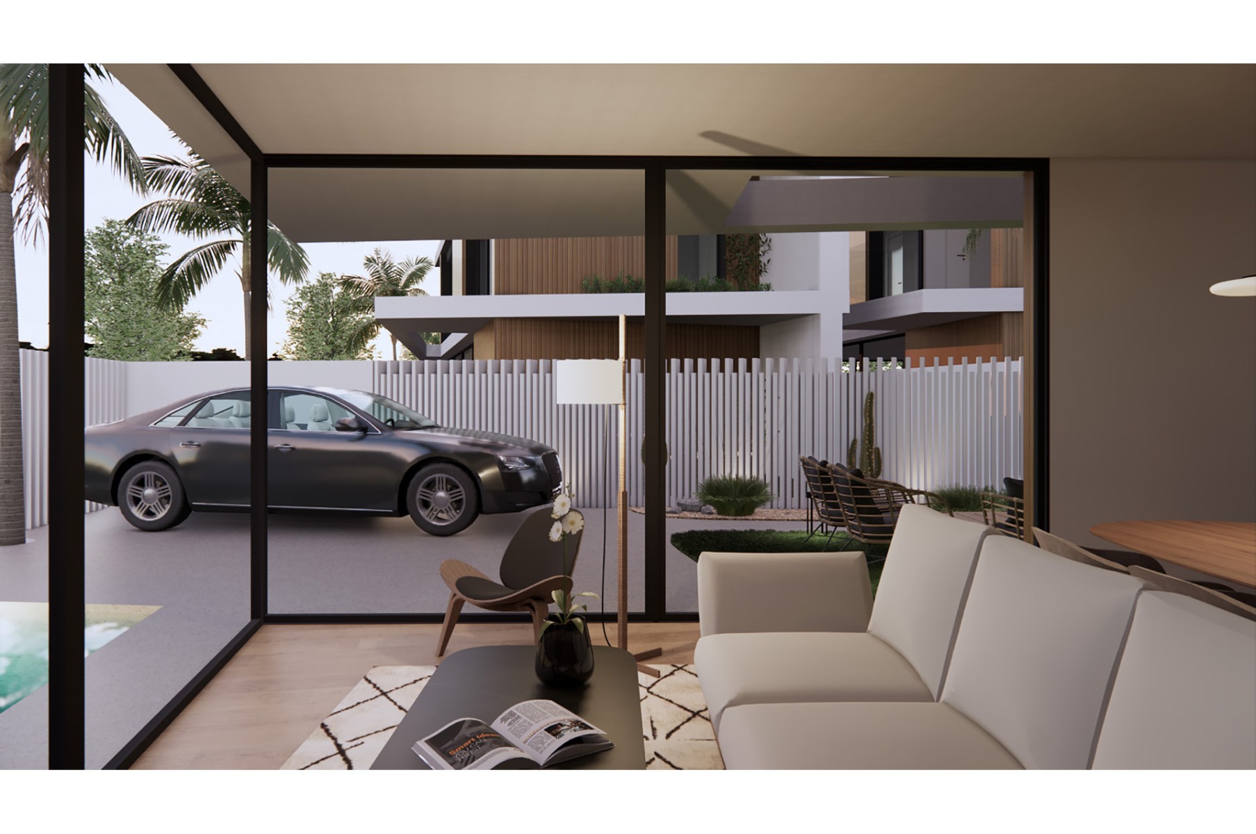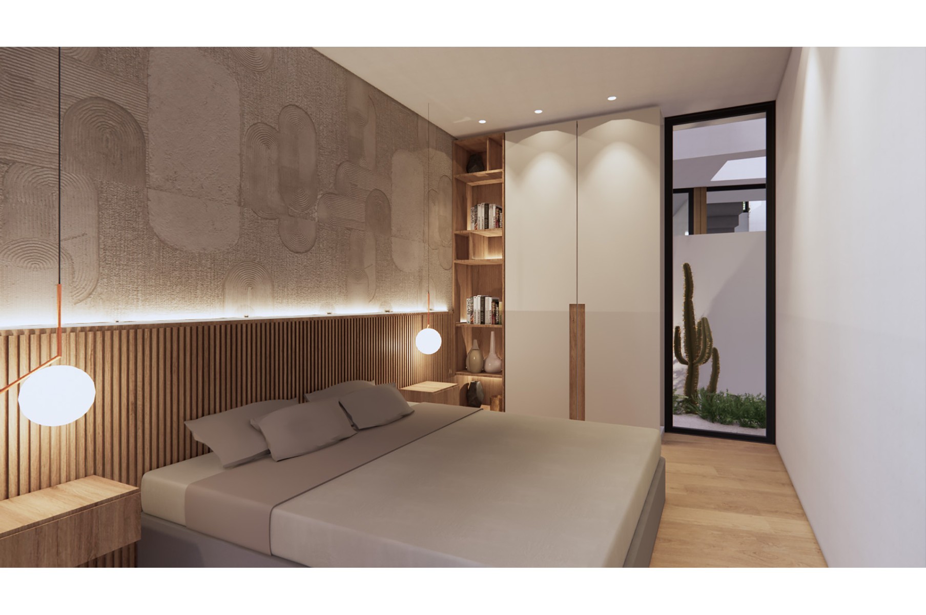 Luxury villas in a unique design, distributed on two floors, with 3 bedrooms and 3 bathrooms plus a solarium. The main living area has an open and bright atmosphere, thanks to the large windows, and includes the lounge, dining area and kitchen. When the windows in the lounge are open, the terrace and pool area feel like a seamless extension of the lounge. There is a bedroom and bathroom on the ground floor, and 2 more bedrooms and 2 bathrooms (one en-suite) on the first floor.