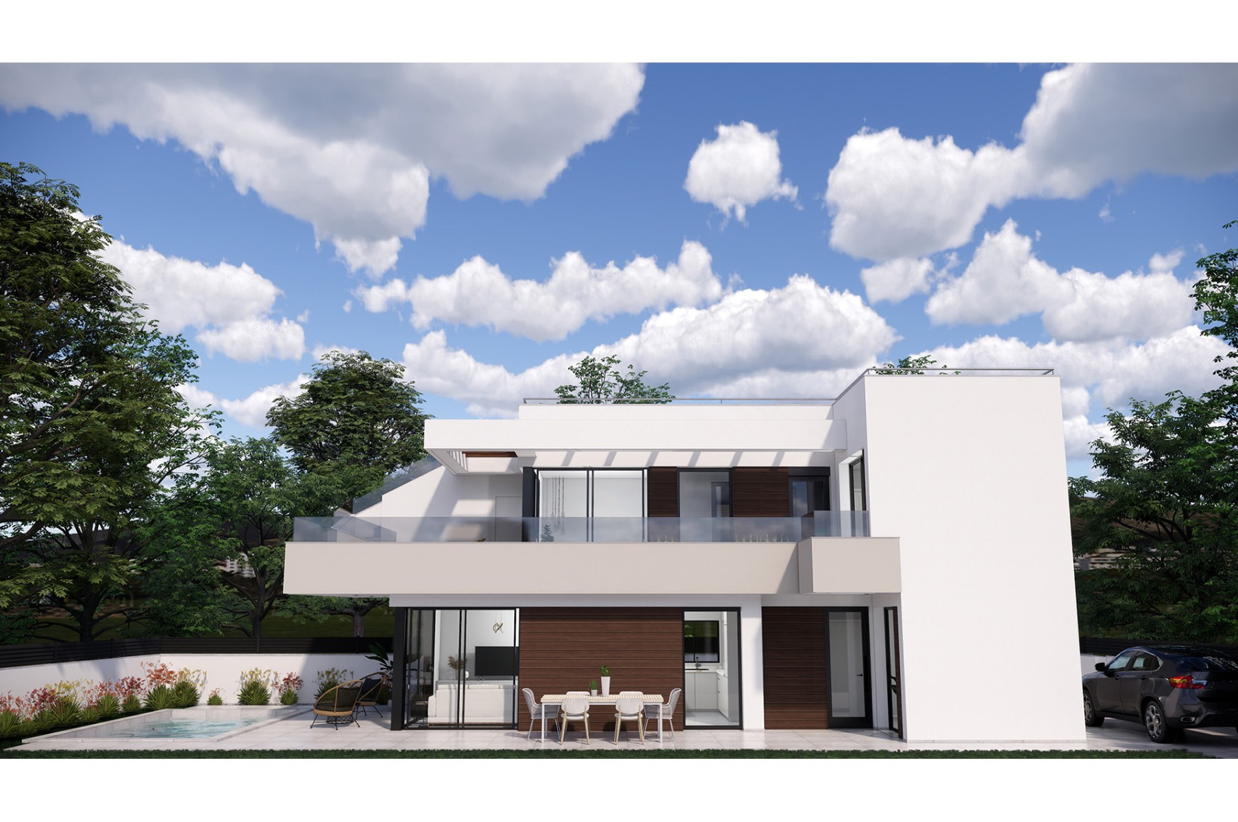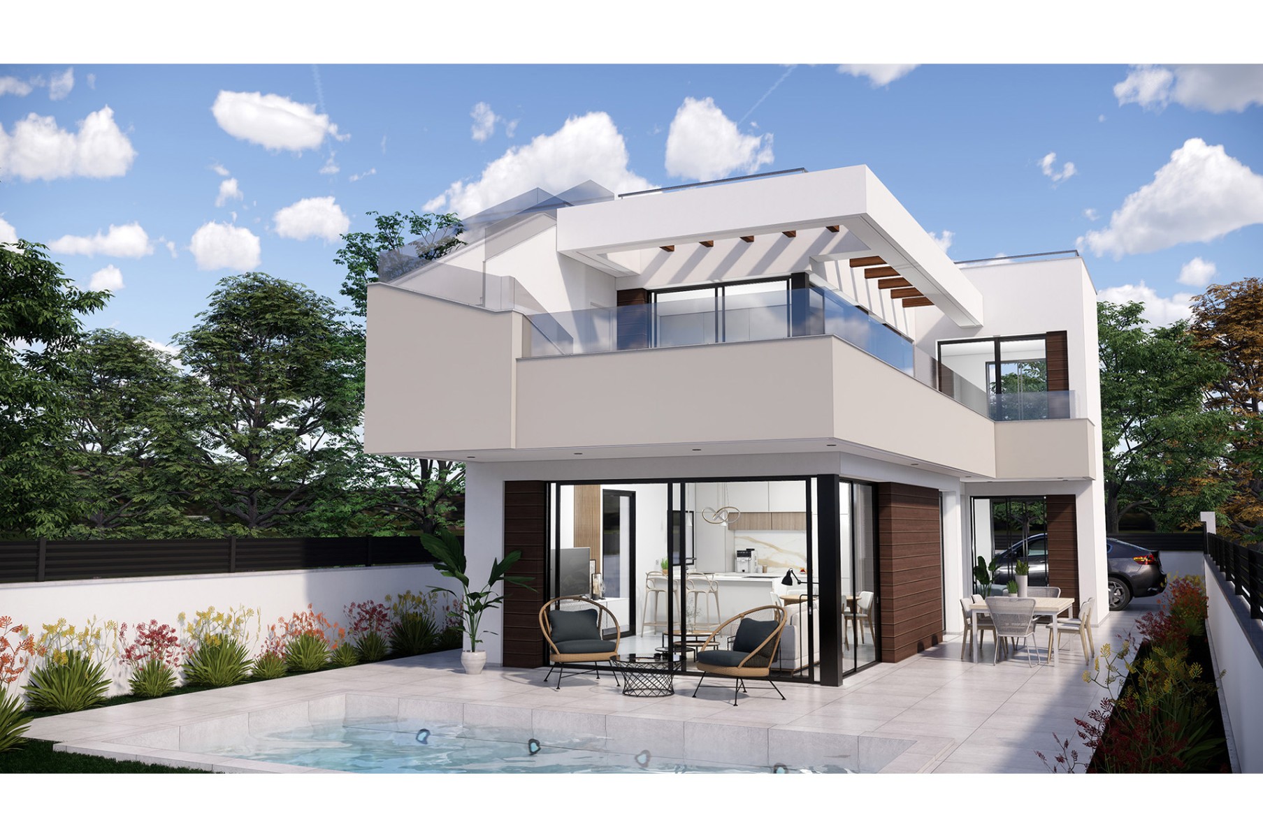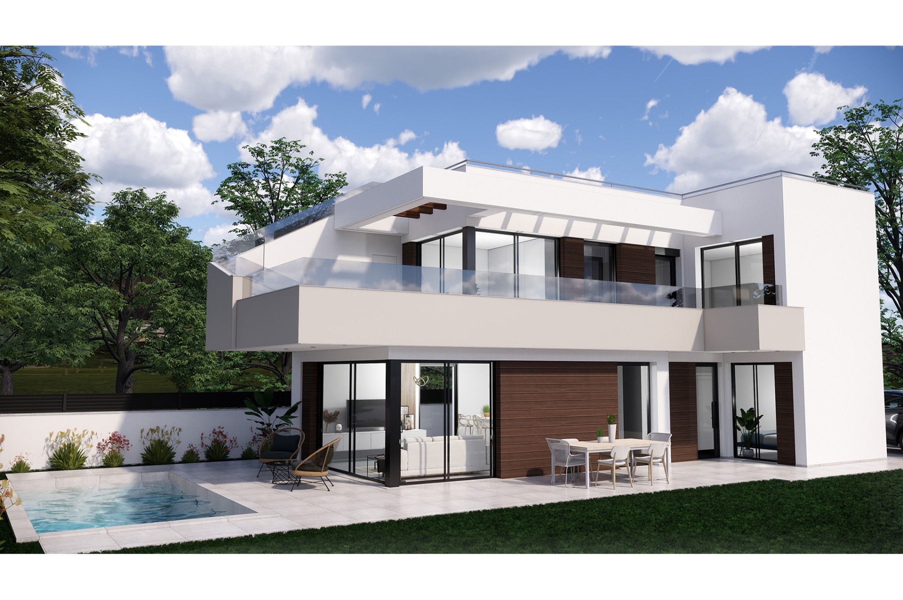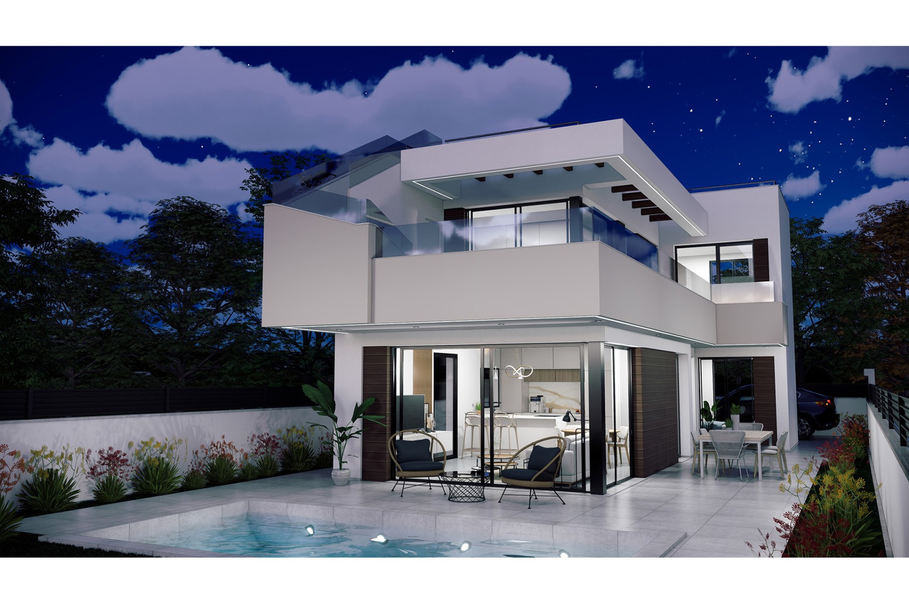 New exclusive and luxurious project of modern villas in the residential area of Lo Romero Golf, in Pilar de la Horadada. This golf resort is ideally located, only 7 minutes’ drive from the town centre, and 12 minutes from the fabulous beaches of Torre de la Horadada.