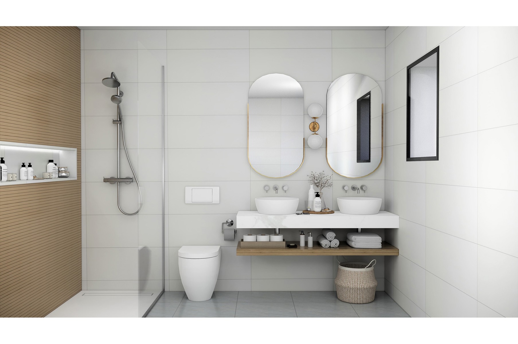 Built with the best qualities, these villas include pre-installation of ducted A/C, underfloor heating in the bathrooms, electric blinds in the lounge and the bedrooms, fitted wardrobes, and parking on the premises.