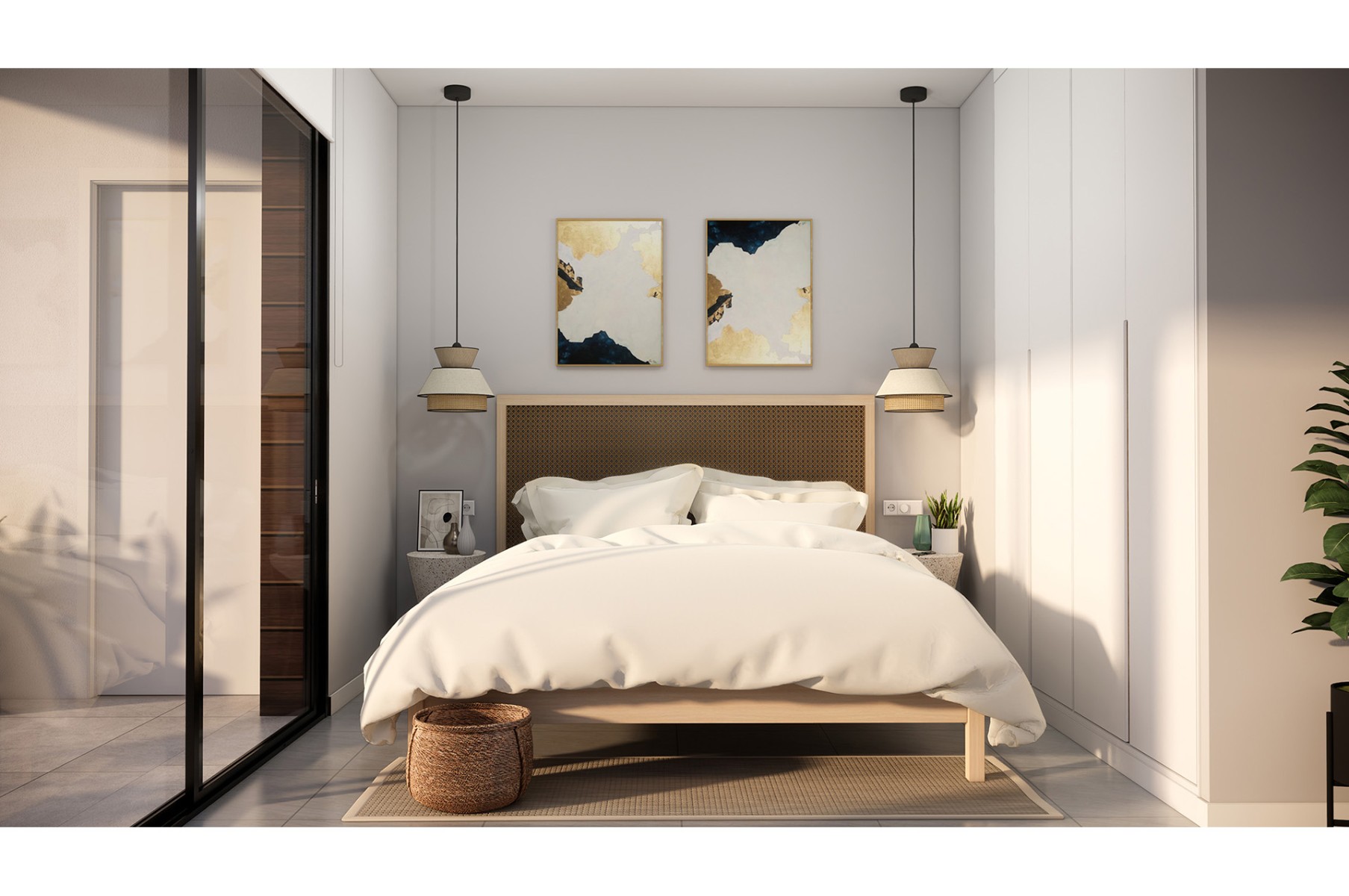 The project comprises villas with 3 bedrooms and 3 bathrooms in different models: two-storey villas with or without a private pool; and a villa on one level with a solarium and a private pool. The villas present an open living area, combining the kitchen, dining area and lounge in one large space. All bedrooms have an en-suite bathroom.