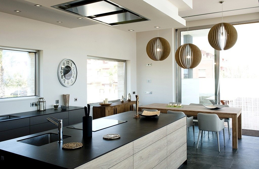 fully equipped with appliances, living room with wine cellar and large windows overlooking the