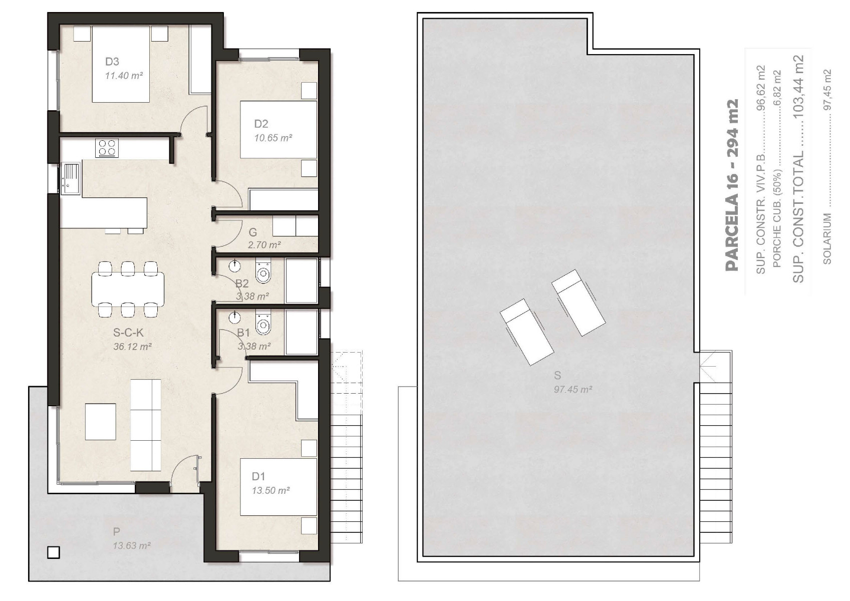 Discover your dream villa in Pinar de Campoverde. This breathtaking newly built villa offers you a first-class living opportunity that leaves nothing to be desired.With 3 spacious bedrooms and 2 modern bathrooms, this villa offers enough space for you and your family. A special highlight of this villa is the spacious solarium with an area of 97.45 m². Here you can enjoy the warm rays of the sun, admire breathtaking views of the surroundings and spend unforgettable moments with family and friends. Built with high-quality materials and the modern facilities ensure a luxurious and comfortable living experience. The developer offers you the opportunity to design your new home according to your personal preferences. For example there is the possibility to add a private 3 x 6 pool at an additional cost. The villa will be completed within 12 months of the signing the contract.