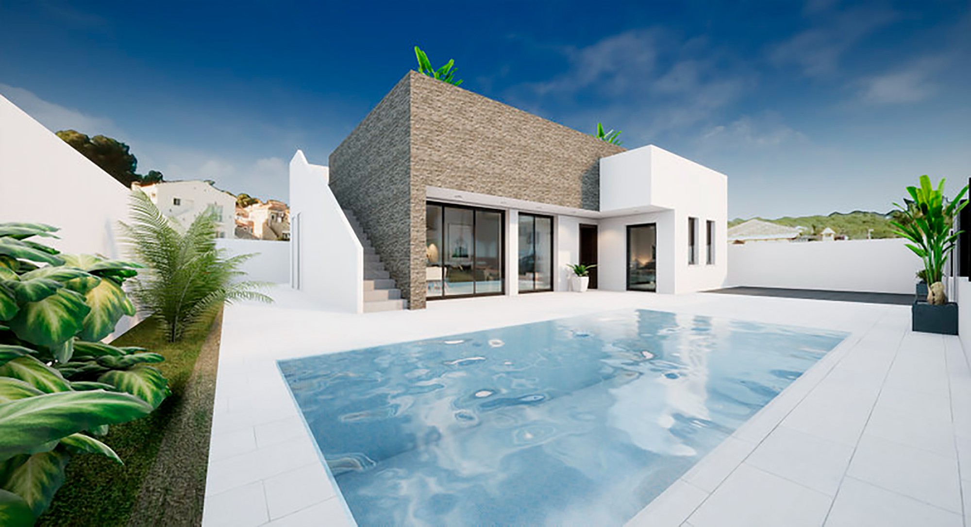 A new modern residential of detached villas in Pinar de Campoverde. These detached villas are at close distance from the beautiful beach of Las Mil Palmeras.