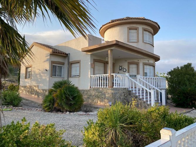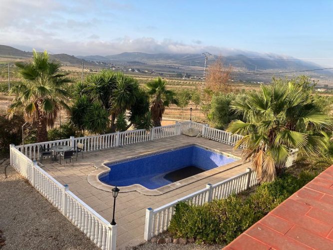 Lovely spiral villa in cañada de la Trigo. We present to you this beautiful spiral house in canada del Trigo near Pinoso, with amazing views, private swimming pool it has 4 bedrooms and 3 bathrooms and a separate 1 car garage. the main house has 3 double bedrooms, master with ensuite and a large family bathroom, above is a self contained 1 bedroom annex with bathroom. large manageable plot with mains electric water and fast internet. Close to pinoso just over the Murcia border so lower purchase tax 8 %
