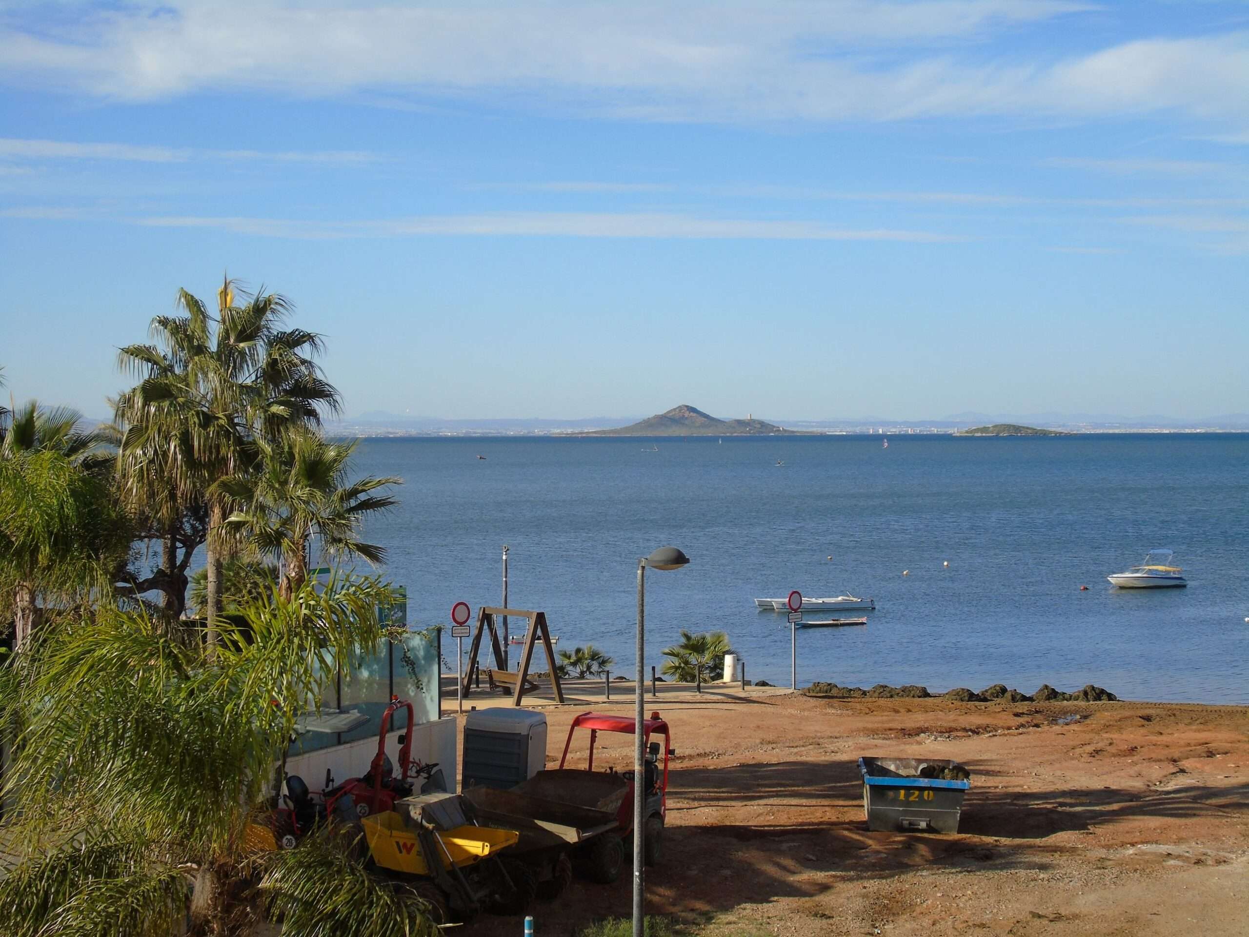 Front line to the Mar Menor beach. In a quiet village around 1 minute to the main La Manga – Cartagena autovia. There is a supermarket, chemist, cafe/bars & restaurants, a cash withdrawal machine and a medical centre. 5 minutes to the world famous La Manga Club with its 3 Championship Golf Courses. 5 minutes from Cabo de Palos and its renowned seafood restaurants, also within easy reach of Corvera airport. (Around 65 minutes from Alicante airport.) A regular bus service between La Manga – Cartagena – Murcia.