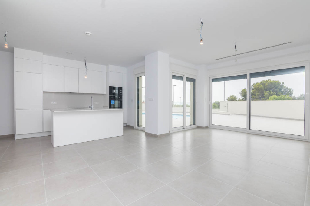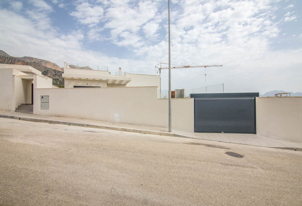 This modern single-storey villa is under construction in Polop de la Marina on the Costa Blanca, off Altea. This beautiful villa has two or three bedrooms with fitted wardrobes and two bathrooms. A large living room with kitchen and pre-installation central air conditioning. Built on a 400 m2 plot with private 6 x 3 pool, garden, private parking and barbecue. The house is all on one level for more comfort and all rooms have direct access to the pool, garden and barbecue. Luxury details and high construction quality make these villas a unique and exclusive property on the Costa Blanca. This beautiful villa is located in a very quiet residential area, in a unique setting, just like Polop de la Marina, all without renouncing the services offered by a town like Benidorm, which is about 10 minutes away. A few minutes from the capital of sport on the Costa Blanca and international tourism in 2019 like de Nucia, very close to Benidorm. If you love the sea and mountains, this is the area for you. At the foot of the "Leon Dormido" and 10 minutes from the best beaches in the province of Alicante, such as Altea, Benidorm and El Albir. Start of construction: November 2023, completion around May 2024 (subject to change)