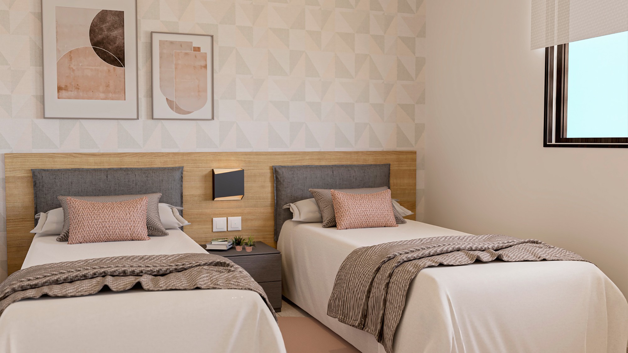 This project offers seafront beach apartments with 2 and 3 bedrooms and all with large terraces. The ground floor properties have a spacious terrace and garden. The owners of the penthouse will have a large outdoor terrace and a spacious solarium with shower, electricity and TV connection. All the apartments will have a parking space, where they will also have the pre-installation for electric cars. There is also the possibility of purchasing a storage room.