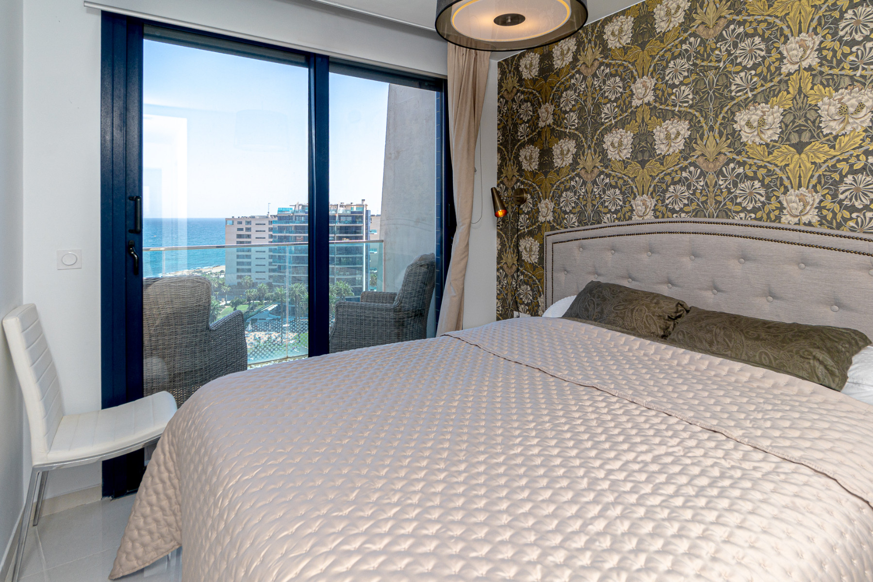 Frontline Penthouse in the Prestigious Sea Senses Complex, Punta Prima. This modern 9th-floor penthouse, built in 2015, offers 68.06 m² of living space with 2 double bedrooms, the master with en-suite, a modern shower room, and an open-plan kitchen leading to a spacious lounge and dining area. The sun terrace provides stunning views over the communal pools, gardens, and the Mediterranean Sea, ideal for al fresco dining. Sold fully furnished with quality fixtures, air conditioning, white goods, a private parking space, and a storage room in the secure underground garage. Residents enjoy lift access, 24-hour security, four communal pools (one heated), bar, gym, sauna, children’s play area, and sports facilities including paddle and basketball courts. Perfect as a luxury holiday home or rental investment in one of Costa Blanca’s most sought-after beachside locations. Contact us for further information!