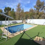 Outside, a private oasis awaits, complete with a 5x3m pool and lush lawn areas perfect for sunbathing and relaxation. A private entrance, adorned with a substantial metal door, sets the stage for the serene ambiance of the property.