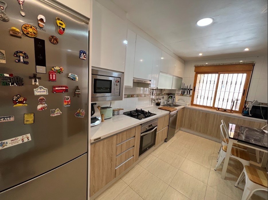 We present this beautiful country house located in Rafal which consists of a large garage of 145.90 m2 with capacity for 5 vehicles! The garage also comes equipped with a kitchen, connected to a large terrace with barbecue and a bathroom, to enjoy leisure with family or friends. This house has an area of 142 m2 (minus the garage) and offers a good size living room with access to a beautiful terrace overlooking the street, large kitchen, 4 bedrooms, two of which have en suite bathrooms, a shared family bathroom , and to dressing room. The property also benefits from double glazing in all windows, fitted wardrobes in all bedrooms, air conditioning with heat pump for the whole house and solarium.