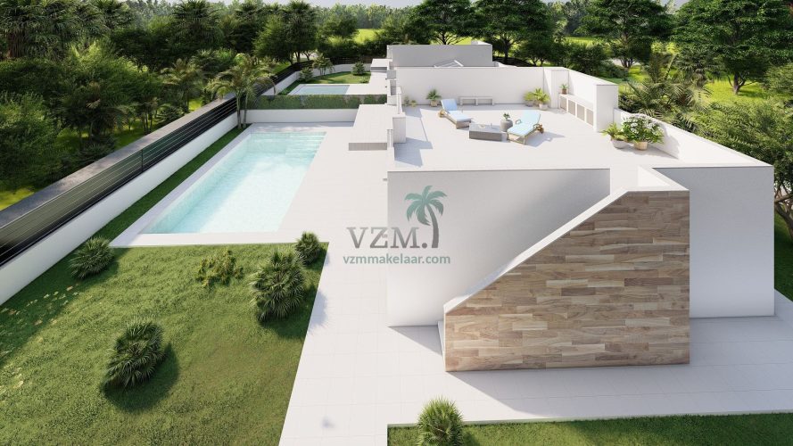 2 Luxury single storey villas on large plots. 2 Single storey villas, on plots of almost 600 M2 each, with private pool of 30 M2, garden and large solarium on the roof.