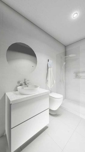 Fully fitted bathrooms with suspended toilet, shower screens, vanity unit, mirror with light and rainfall shower.