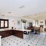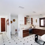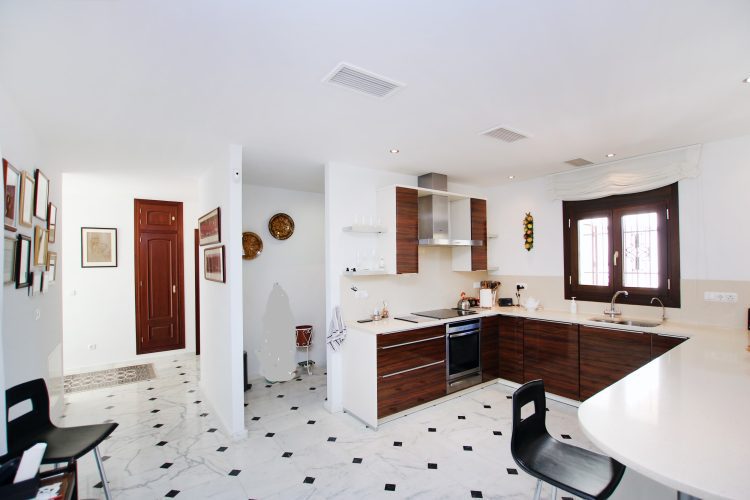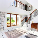 Entering the villa, the immediate impression is one of space and light . The entrance hall having floor to ceiling glass windows that look directly out the garden and swimming pool beyond. A large wrought iron and wood staircase with a gallery landing above is a stunning focal point to the home . The hallway is large and could also be used as a small reception room .
