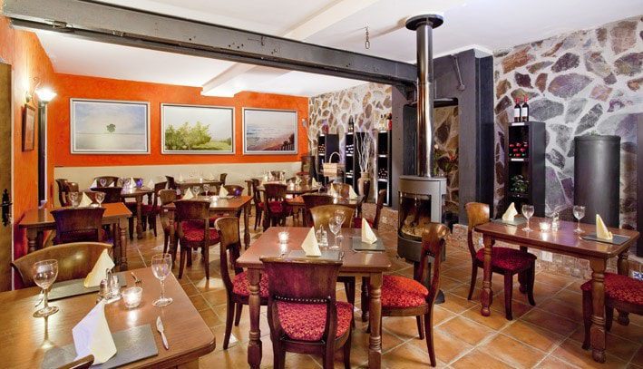 Locally acclaimed restaurant within the hotel that serves modern European- style cuisine and mouth-watering local ingredients. Enjoy sumptuous food or a refreshing drink on the large riverside terrace or in the attractive and traditional restaurant with wood-burning fire. The restaurant attracts residents and non-residents from around the area, and hosts live entertainment and BBQs in the warmer months. A stylish bar area, a large, fully fitted industrial kitchen and a food storage room are situated on the ground floor. Other amenities and facilities include a reception with staff bathrooms, a lift, a library, a drinks storeroom, guest toilets and a large private parking area.