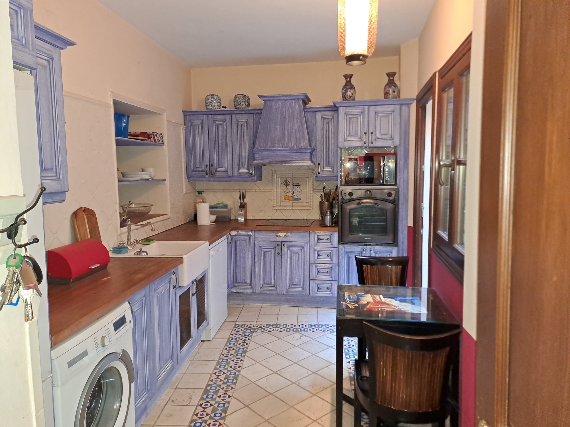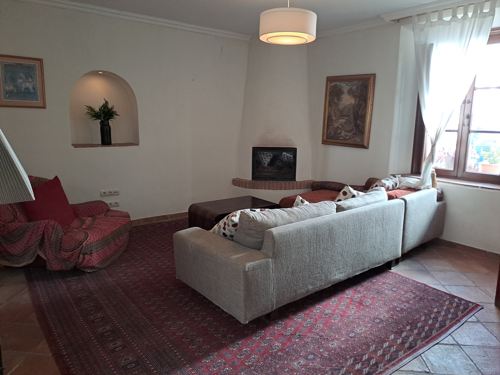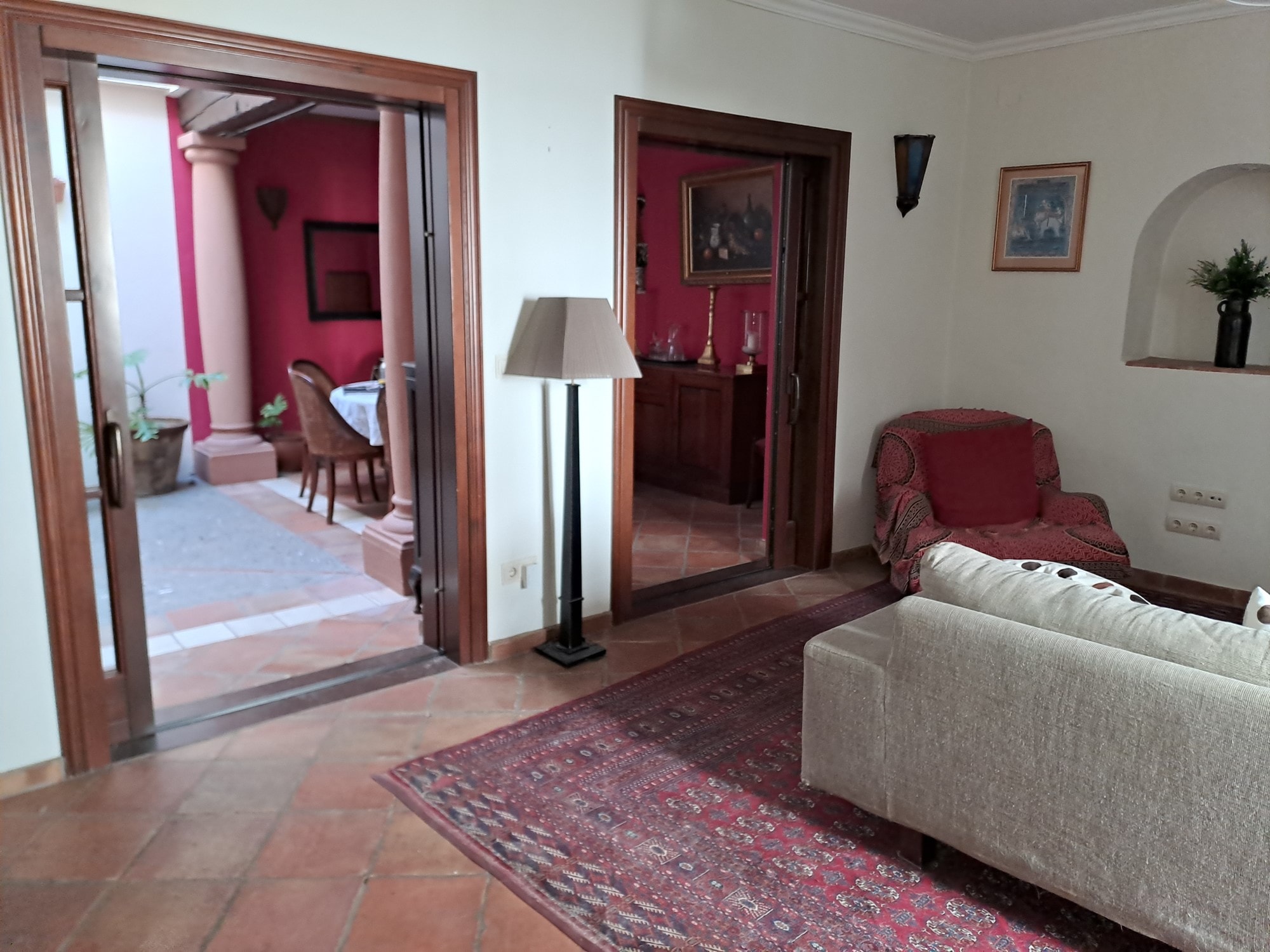 There are beautiful terracotta floor tiles throughout.