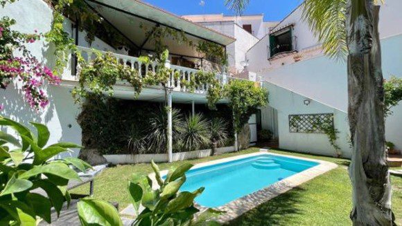 On the second floor, you'll find the master bedroom with an integrated bathtub and jacuzzi in the bathroom, as well as the children's bedroom with two comfortable beds and an office. The patios, adorned with beautiful Andalusian-style tiles, give a unique charm to the property, highlighting the Ronda-style tiles.