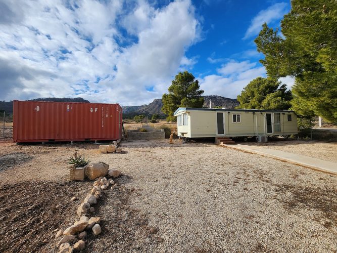 Land with planning permission and caravan. We are proud to offer this building plot with planning permission and plans, mains drinking water, electricity and a storage containter and static caravan for sale.