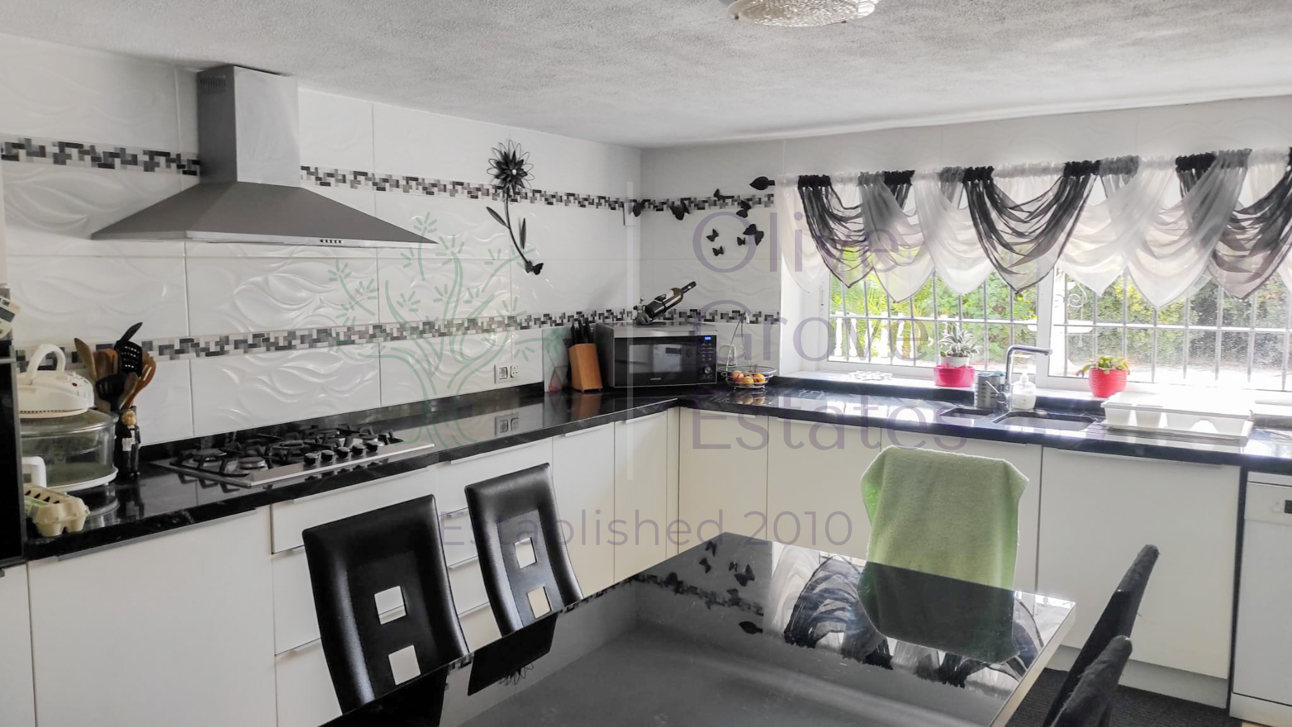 The property also includes three additional structures situated on the sprawling 2,600m² plot. These consist of a sizable 40m² garage, a 40m² workshop that can easily be converted into a self-contained apartment, and another substantial workshop complete with a chicken coop.