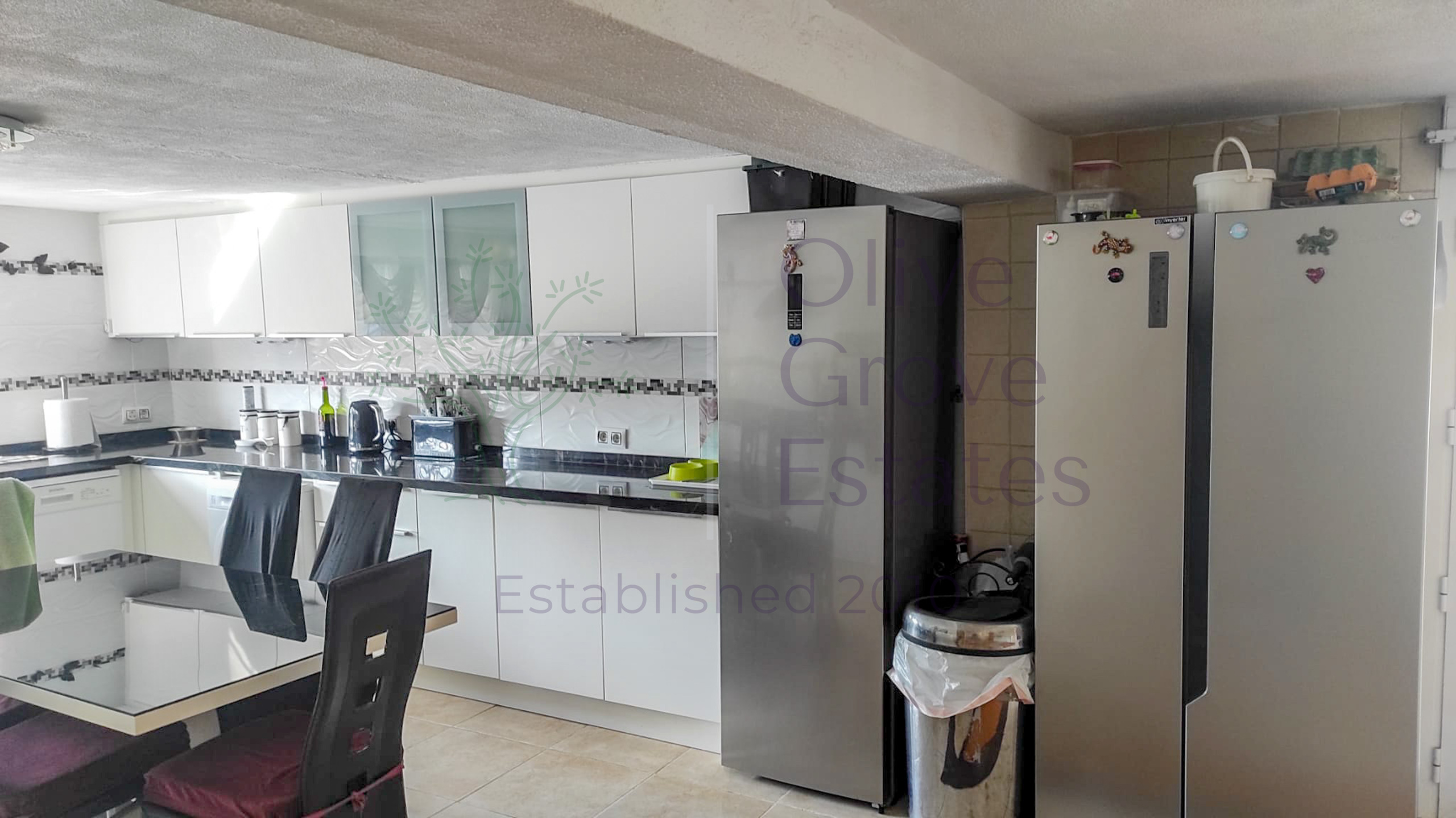 The primary 180m² house, as previously mentioned, has been tastefully refurbished to an impressive standard. The ground floor comprises a spacious living room with a cozy log burner, an expansive kitchen and dining area, an office, a bathroom with both a bathtub and a shower, and a single bedroom. Two staircases lead to the upper level, with one leading to the remarkable main bedroom and the other leading to a hallway that grants access to four additional bedrooms. Among these bedrooms is one with an ensuite bathroom for guests, and there is another family bathroom with both a shower and a bathtub.