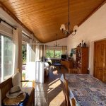 At the front of the property, we have a quite lovely terrace with a pergola and extraordinary views of the mountains. From here you enter the conservatory and this is where you would live pretty much, it´s gorgeous and is built to adapt to the weather with windows all around that can be opened up to allow the mountain breeze to come through or closed in winter to trap the sunshine, it is more like a lounge/diner than a conservatory but, moving onwards we enter the open-plan lounge/diner/kitchen which has a fully fitted kitchen at one end and a cosy feature log fire at the other with plenty of space to relax in.