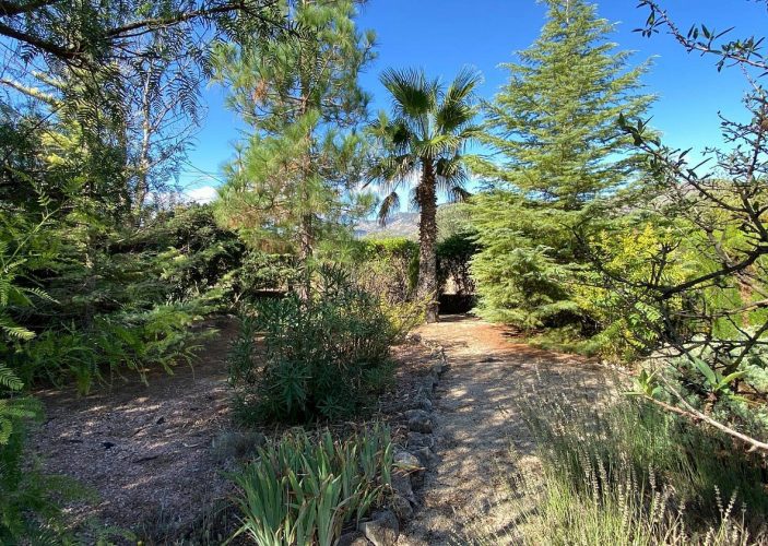 Walking around the property is it a series of well-kept garden areas along with a very private swimming pool area with terracing and more naturally shaded areas and sunny areas which is to the left-hand side of the property. Walking around to the rear there are five outbuildings, a small garden shed, a bigger tool shed, a compost area, a covered small area and then a storeroom. The entire property is 100% legal so there is an opportunity to remove these outbuildings and install a wooden cabin for guests.