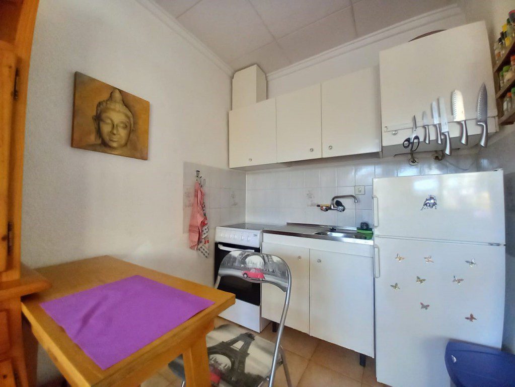 The property is distributed over only one floor. Entering this picturesque house we find a large east orientated terrace of 12m² with many possibilities. The property consists of a living room with open plan kitchen, a double bedroom along with a in 2023 renovated bathroom.