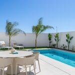 NEW BUILD VILLAS IN SAN JAVIER New build residential development of villas in San Javier, 2.5 km from the beach. Villas built on one floor and consisting of 3 bedrooms, 2 bathrooms and 1 toilet, open-plan kitchen, living room with open views to the terrace, private garden with swimming pool and solarium. Fully fitted kitchen in gloss white or wood including induction hob with integrated extractor, oven, microwave, washing machine, integrated fridge and integrated dishwasher. Complete ducted air conditioning installation. The pool has pre-installation for a heat pump. San Javier is close to all amenities with easy access to the beach, water sports, shops and transport links. Here you can enjoy all the facilities that San Javier has to offer, such as local shops, bars and restaurants, as well as being close to shopping centres, Murcia airport and all the beautiful places along the Mar Menor. Corvera/Murcia airport is 30 minutes away and Alicante airport is 45 minutes away. 939