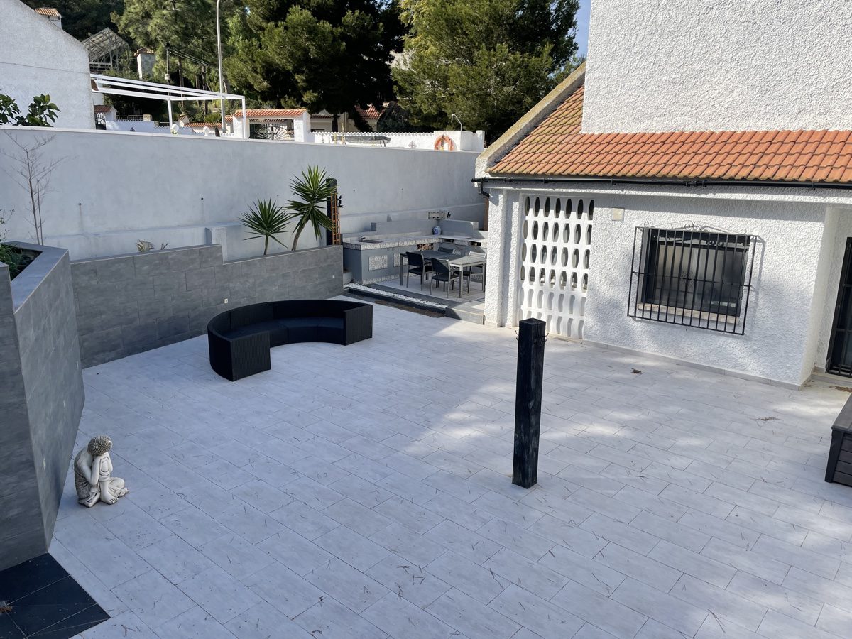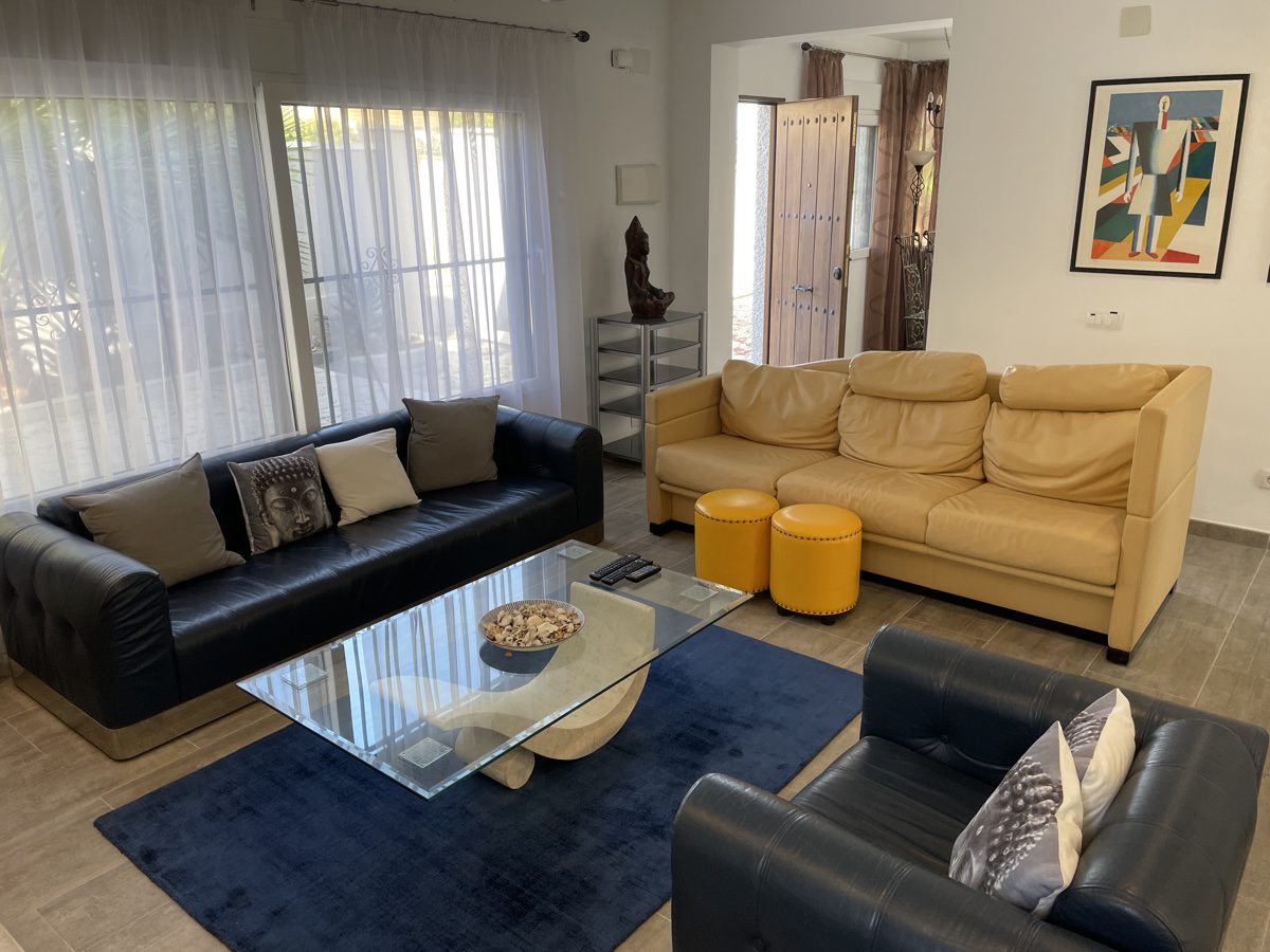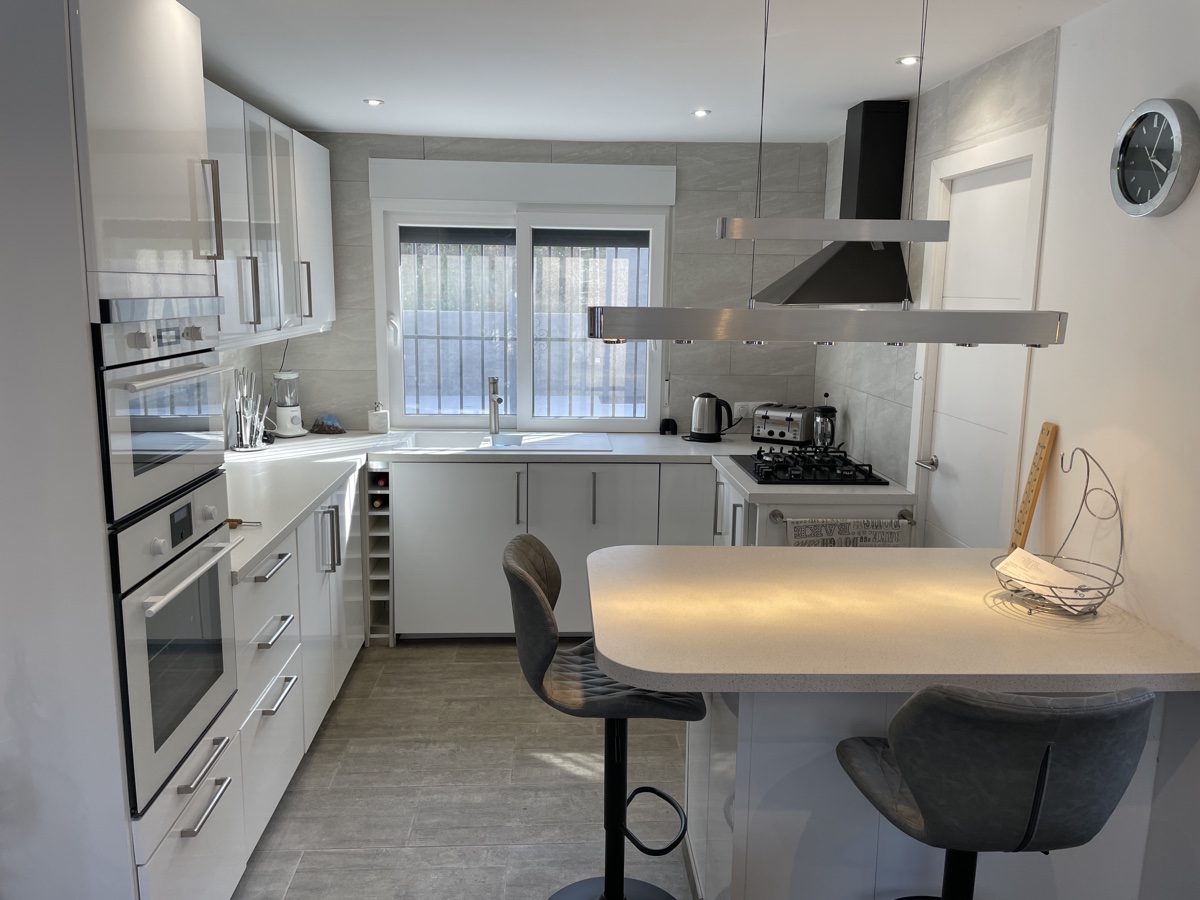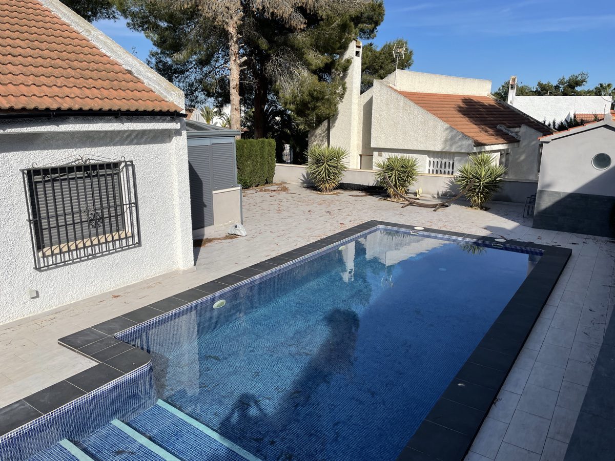 This 3 bedroom, 2 bathroom detached villa is located on Los Communications in San Miguel De Salinas. The property sits on an impressive 735m2 plot with a lovely 8x4 private pool. This villa as recently underwent a full reform both inside and out and now offers a large entrance hall with dining area which leads to a large lounge with open plan modern kitchen with breakfast bar. Leading off the lounge is a hallway taking you to all 3 bedrooms and a modern bathroom..