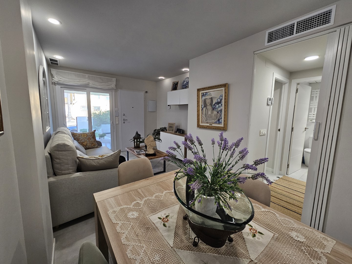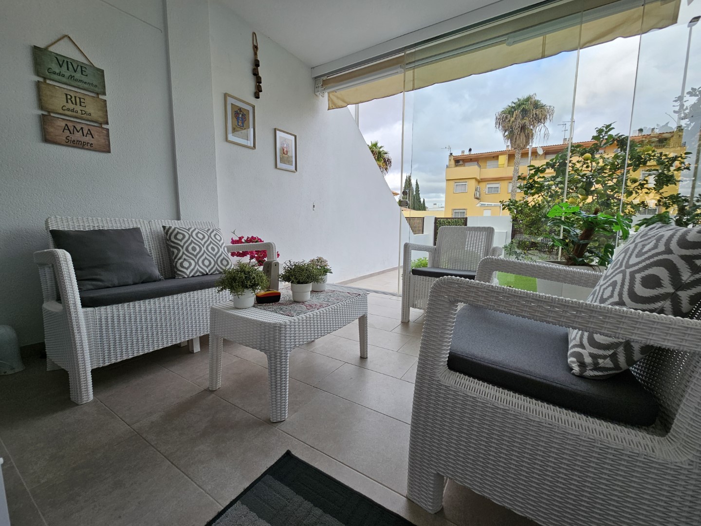 IMMACULATE 2 BED 2 BATH GROUND FLOOR BUNGALOWProud to present to you a truly immaculate ground floor bungalow located in San Pedro del Pinatar, Murcia. As the current owners travelled a lot it was barely used and therefor it looks as good as new. Sold with high quality furniture and top brand appliances.The front garden of 30M² features artificial grass, fruit trees, plants and automatic irrigation system. The 10M² terrace has been completely glazed in extending the living area creating a pleasant environment to enjoy outside dinner or morning coffee. The terrace also feature a sun awning.Inside the property you are welcomed in a cosy lounge/dining room with sliding doors that boast a lot of natural light. The U shaped kitchen is fully fitted and includes high end appliances and drinkwater filter system. From the kitchen you have access to the back patio which has been converted in a covered chill out zone. Here you can also find the laundry zone and aerotermic heater.The master bedroom includes a fitted wardrobe and en-suite bathroom and comprises an electric lifted bed with remote control and flat screen tv. The second bedroom is currently used as tv room and comes with a sofa-bed for visitors and build-in closet. From the hallway you have access to the second bathroom. Electric heating has been added to both bathrooms as well as an electric vaporizing system.The central airconditioning and electric blinds can be controlled with an app or remote controls to adapt the temperature to your personal likesUnderground carpark and storage unit are included in the price. The community pool is just around the corner.