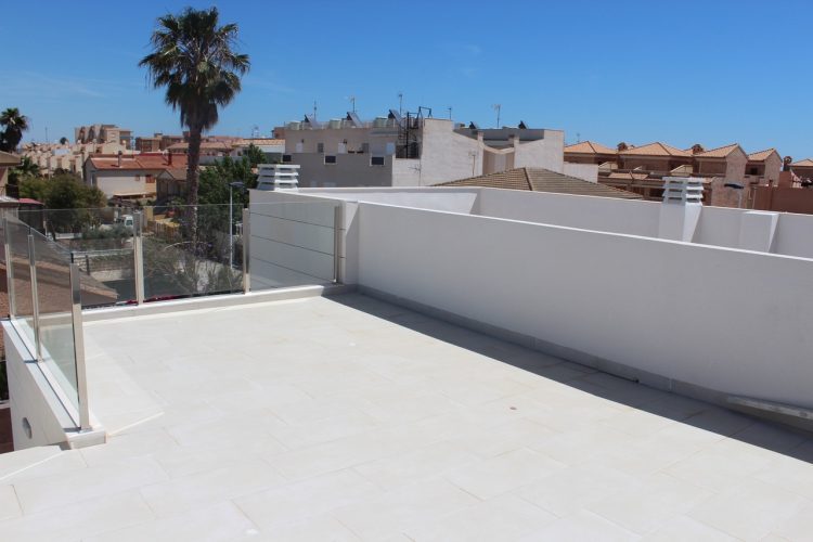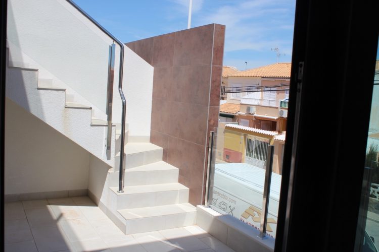 Fantastic, brand new, 2 bedroom, 1 bathroom penthouse in amazing location. Only 100m from the beach and located in the coastal town of San Pedro del Pinatar. This apartment is key ready and the last one remaining and comprises of open plan kitchen/dining/living room with patio door leading onto a terrace, two double bedrooms and a bathroom. Stairs lead up to a rooftop solarium (24m2) with amazing sea views.