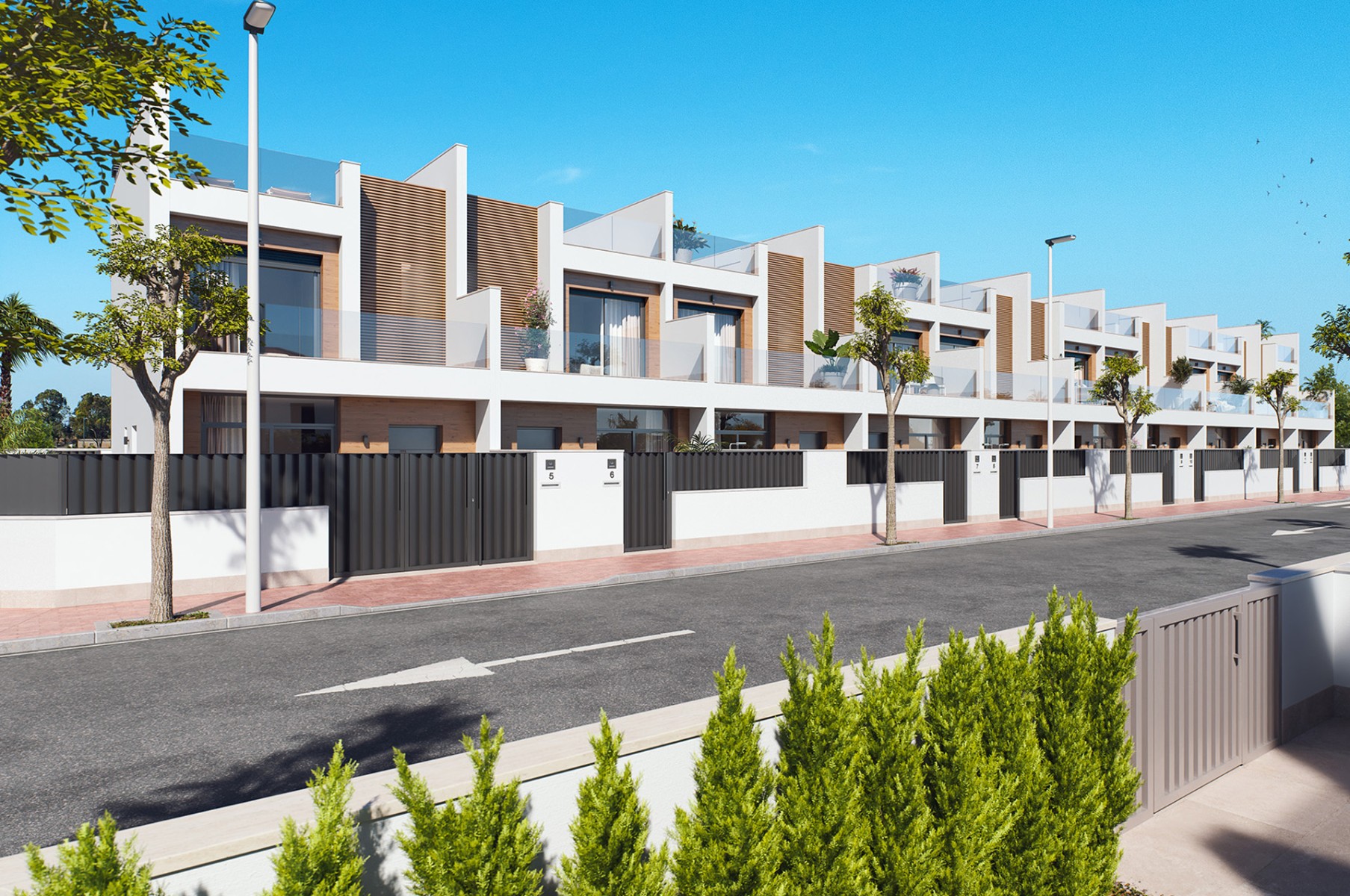 New complex of semi-detached villas with spacious solarium located in a residential area of San Pedro del Pinatar, on the border between Costa Blanca